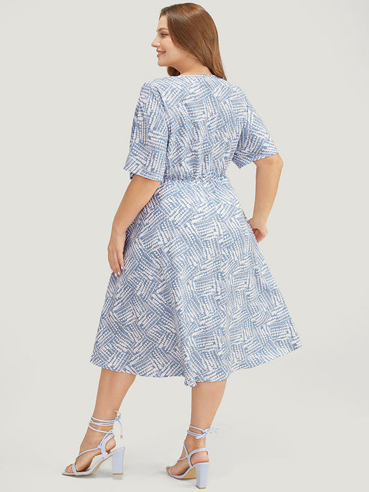 Geometric Print V Neck Pocket Dolman Sleeve Dress