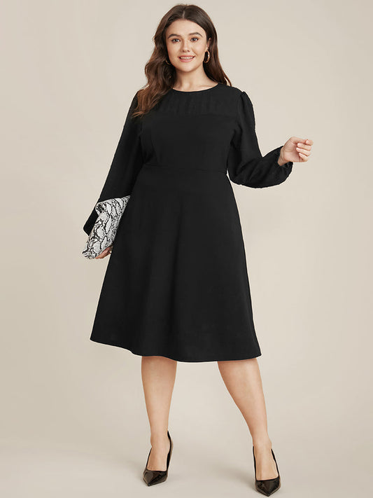 Polka Dot Patchwork Pocket Lantern Sleeve Keyhole Knee Dress