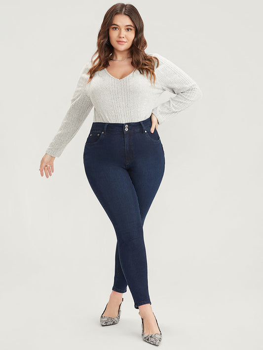 Skinny Very Stretchy High Rise Dark Wash Double Button Jeans