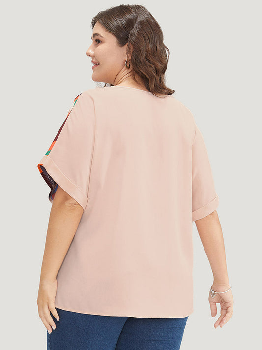 Geometric Contrast Batwing Sleeve Button Detail Wrap Blouse