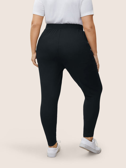 Solid Elastic Waist Straight Leg Pants