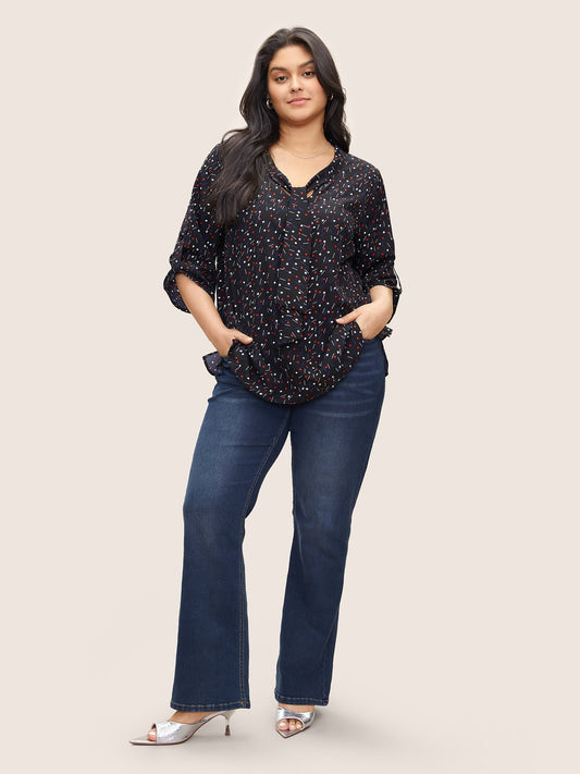 Geometric Tab Sleeve Tie Neck Blouse