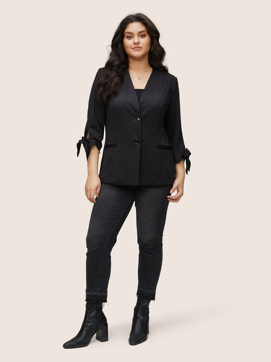 Very Stretchy Plain Bowknot Ties Sleeve Button Up Blazer