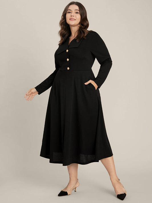 Solid Drawstring Pocket Button Detail Shirt Collar Corduroy Dress