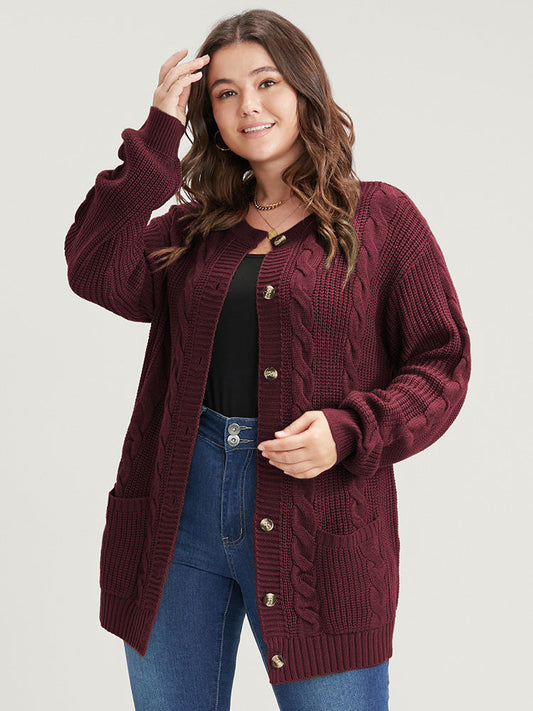 Solid Pointelle Knit Cable Knit Button Front Cardigan