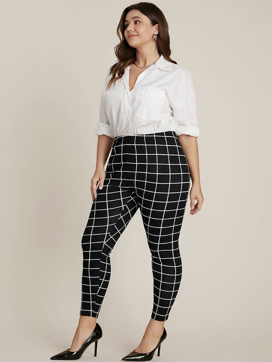 Houndstooth O Ring Zipper Elastic Waist Pants