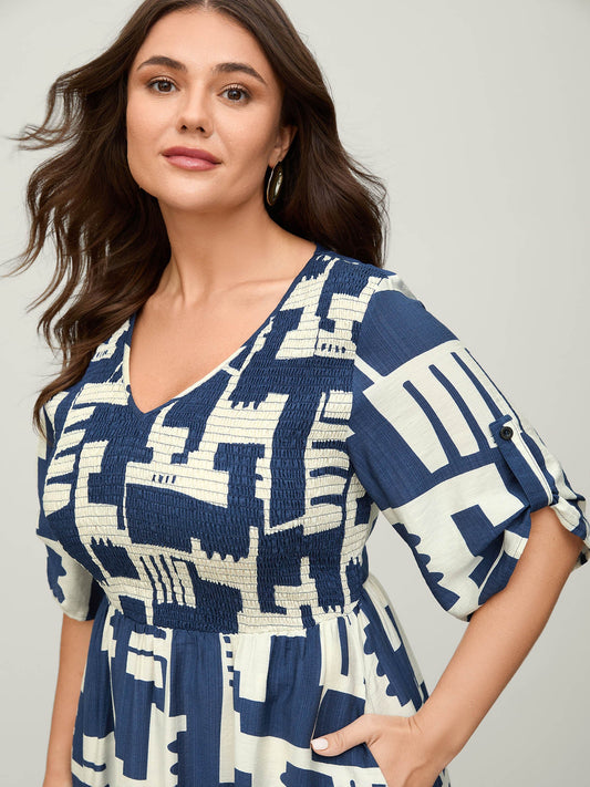 Polka Dots Stretchy Waist Pockets Midi Dress