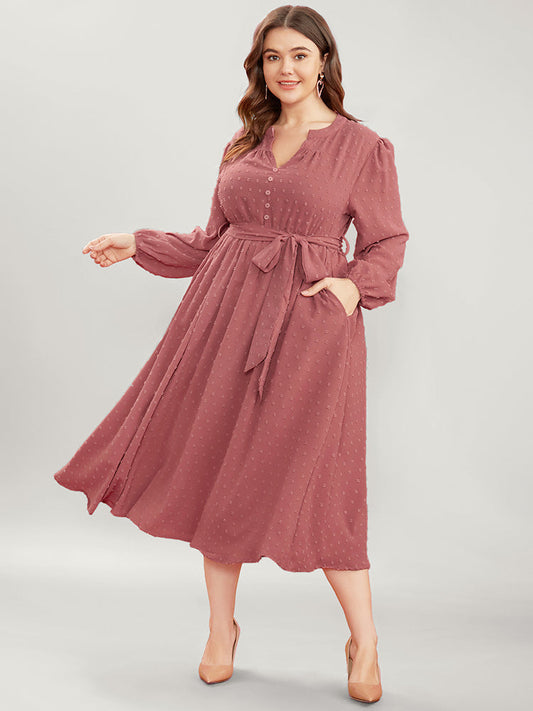 Solid Lantern Sleeve Pocket Chain Detail Button Up Dress