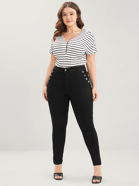 Skinny Slightly Stretchy High Rise Black Wash Button Detail Jeans