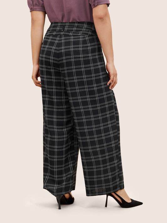Plaid Button Detail Slanted Pocket Wide Leg Pants