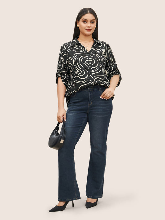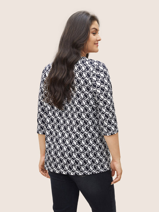 V Neck Geometric Elbow Length Sleeve T-shirt