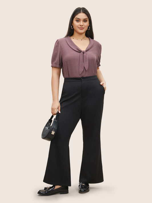 Stretchy Woven Sailor Collar Lantern Sleeve Blouse