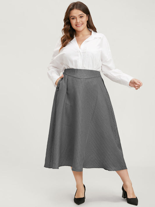 Contrast Button Detail Elastic Waist Pocket Tweed Skirt