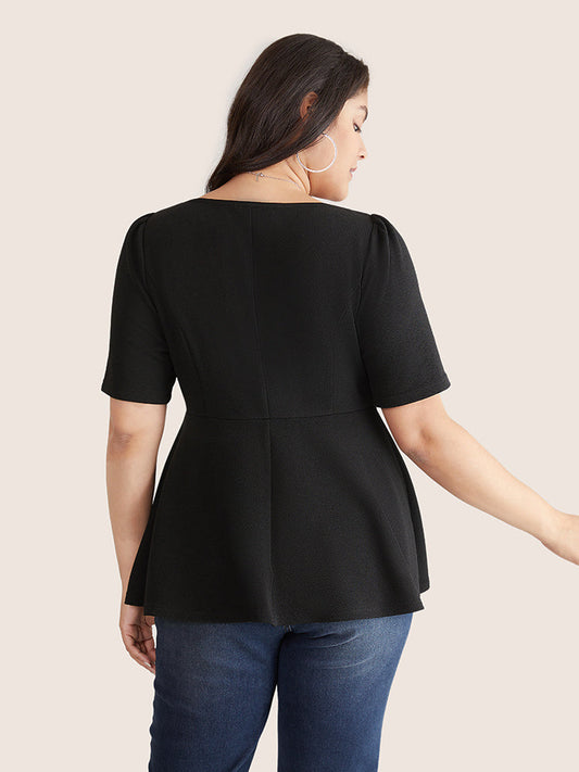 Square Neck Zipper Gathered Puff Sleeve Blouse