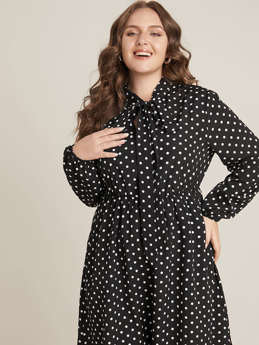 Polka Dot Knotted Neck Pocket Split Hem Dress