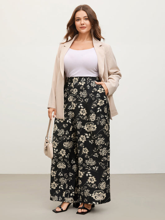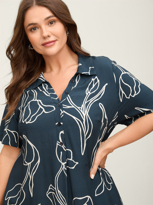 Rayon Floral Stretchy Waist Pockets Midi Dress
