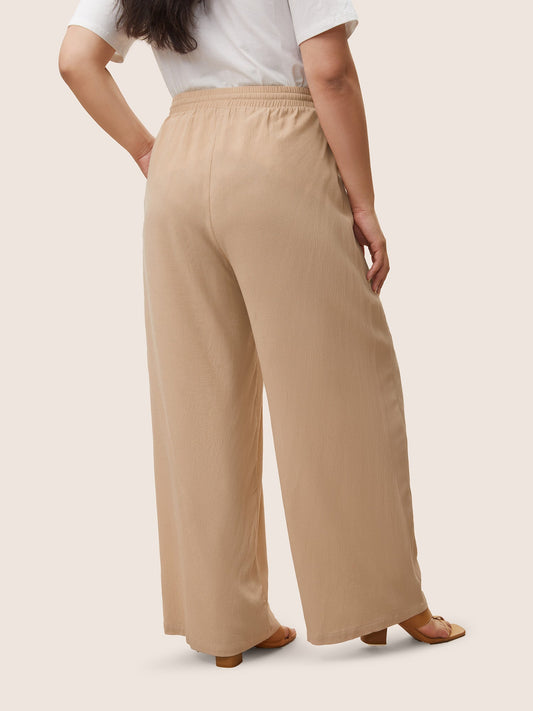 Solid Texture Drawstring Rayon Wide Leg Pants