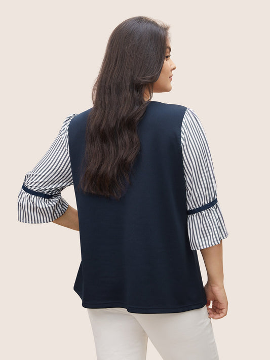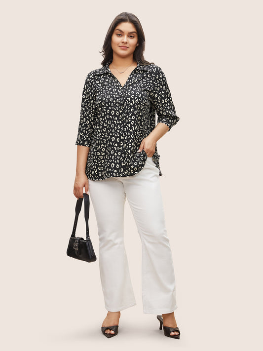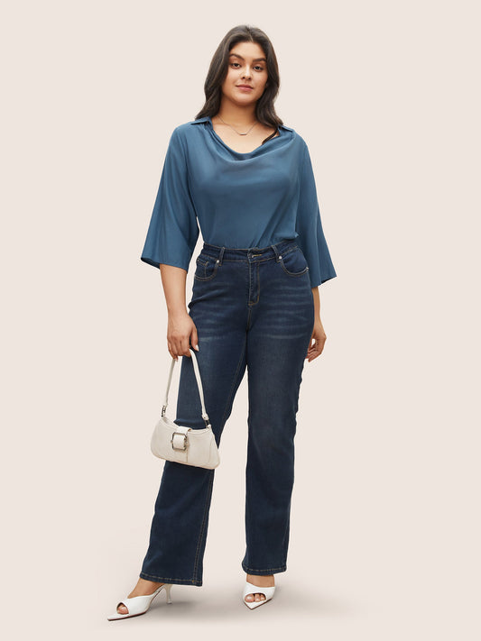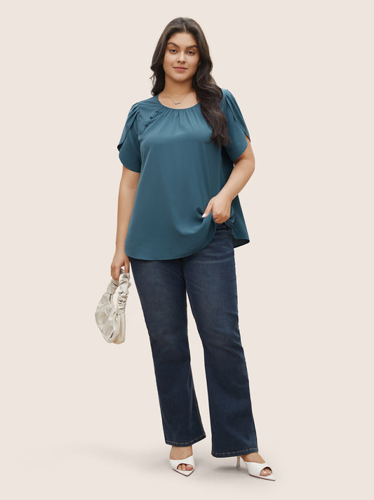 Solid Petal Sleeve Gathered Button Detail Blouse