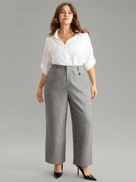 Heather Flap Detail Elastic Waist Wide Leg Pants