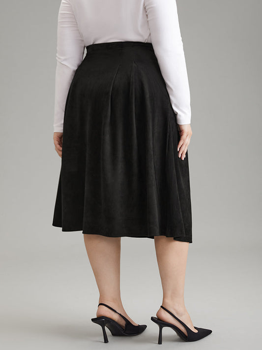 Suedette Plain Texture Pocket A-line Skirt
