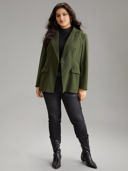 Corduroy Suit Collar Button Up Flap Pocket Blazer