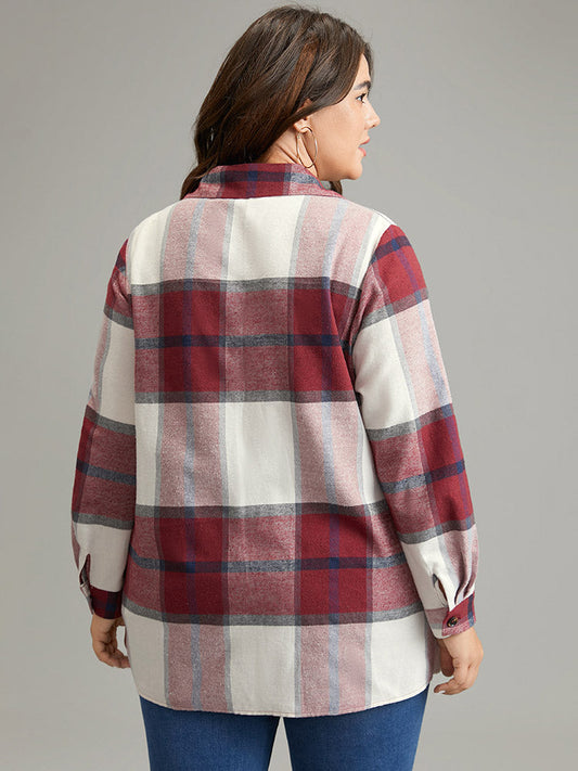 Plaid Shirt Collar Button Through Flap Detail Blouse