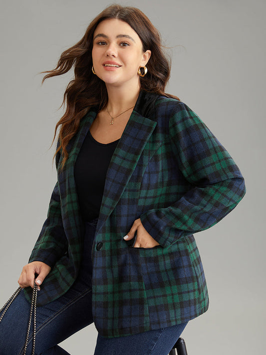 Plaid Button Up Patchwork Flap Pocket Blazer