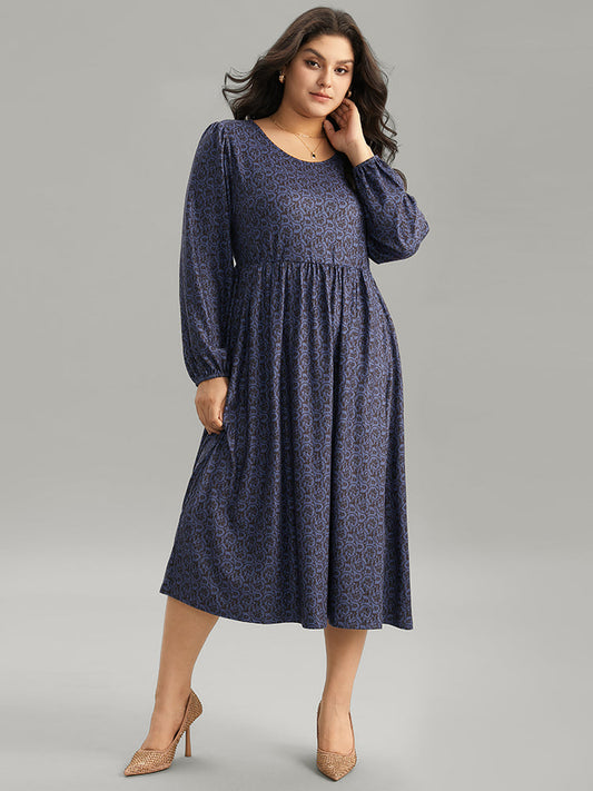Striped Colorblock Contrast Pocket Elastic Waist Dress