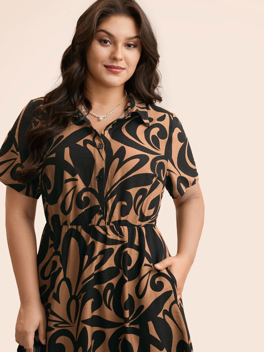 Boho Print Shirt Collar Midi Dress