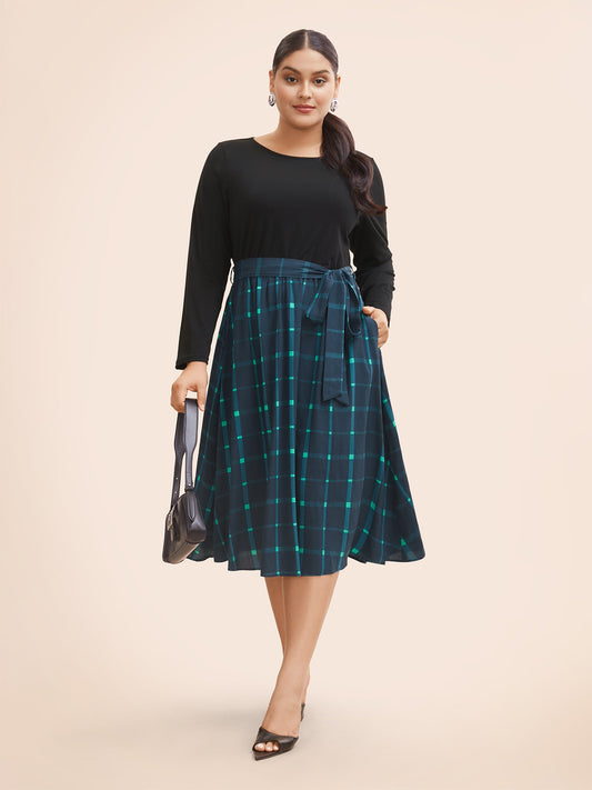 Plaid Patchwork Belted Midi Dress