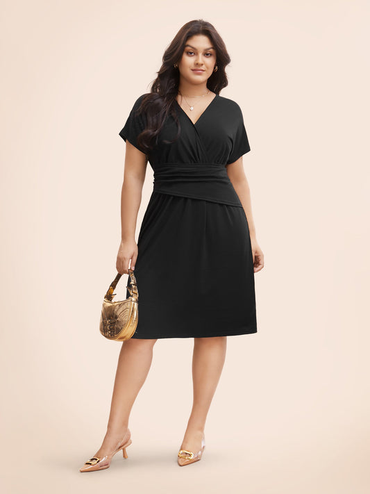 Overlap Collar Dolman Sleeve Ruched Dress