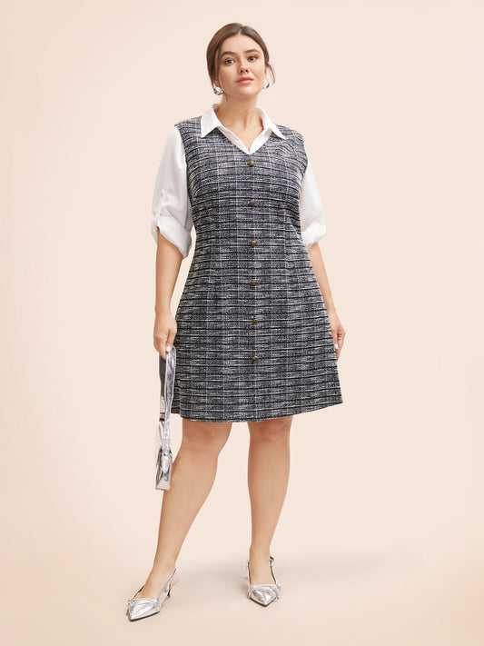 Tweed Button Detail Sleeveless Dress