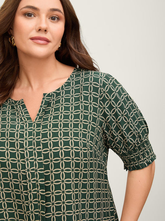 Geometric Print Waist-Cinched Tiered Midi Dress