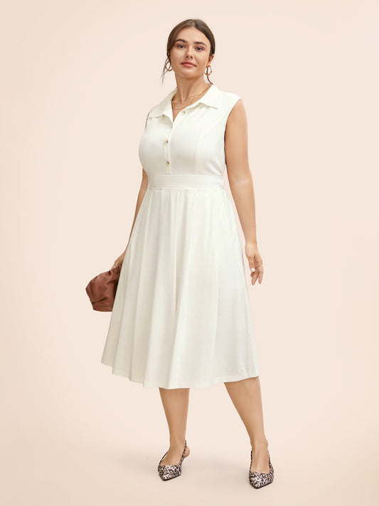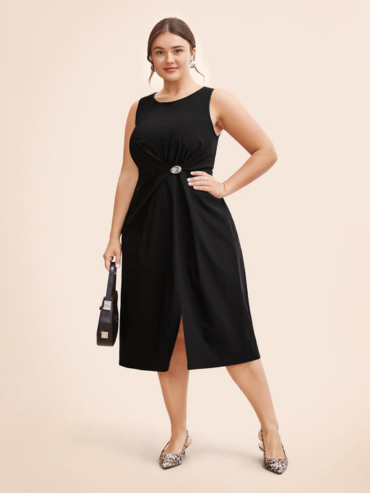 Round Neck Button Detail Split Hem Dress