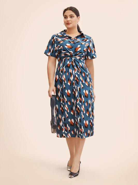 Leopard Print Shirt Collar Twist Front Dress
