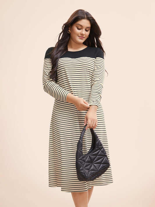 Striped Patchwork Rib Knit Midi Dress