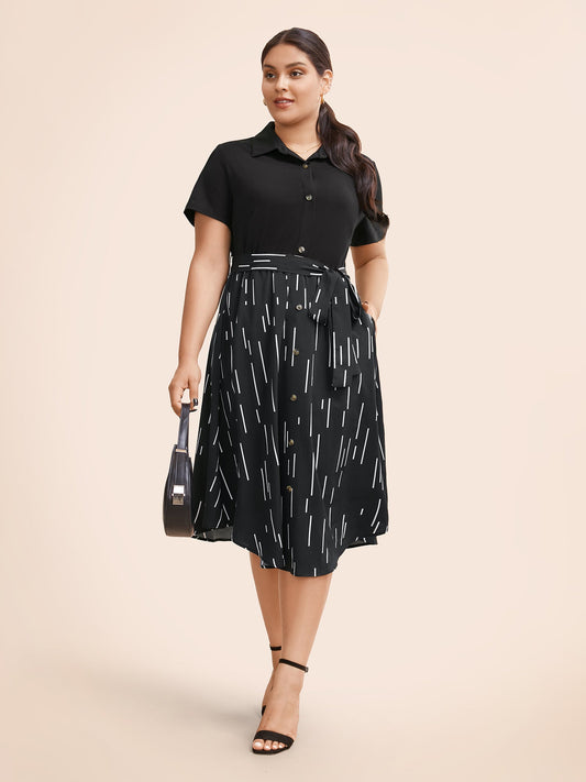 Striped Patchwork Button Detail Belted Dress