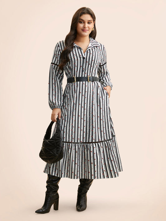 Plaid Pleated Flap Pocket Arc Hem Dress