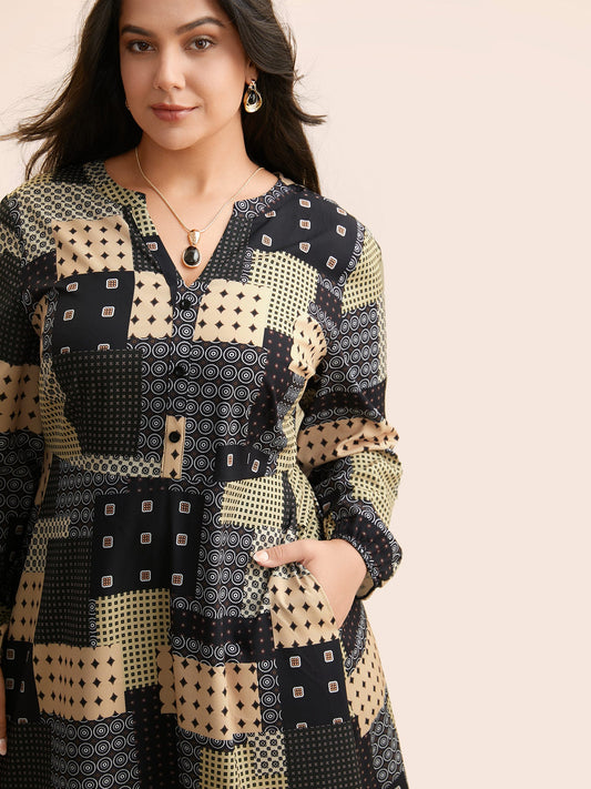 Geometric Elastic Waist Batwing Sleeve Dress