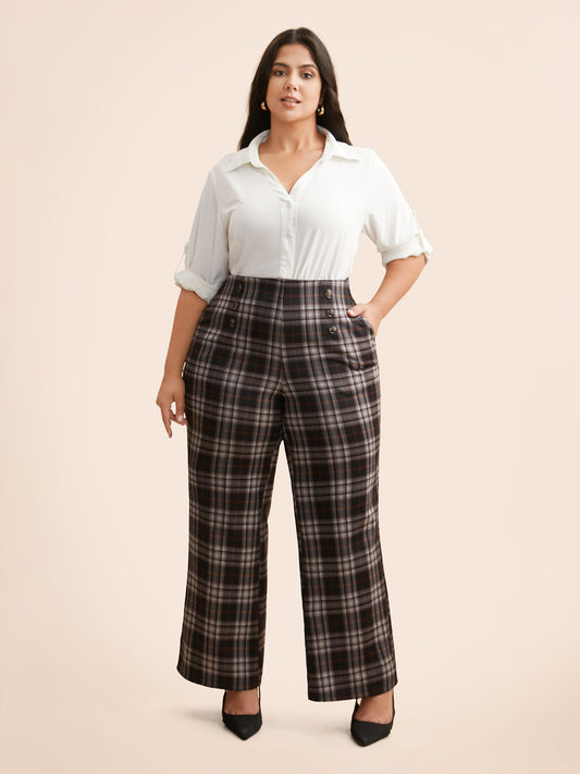 Plaid Button Detail Mid Rise Pants