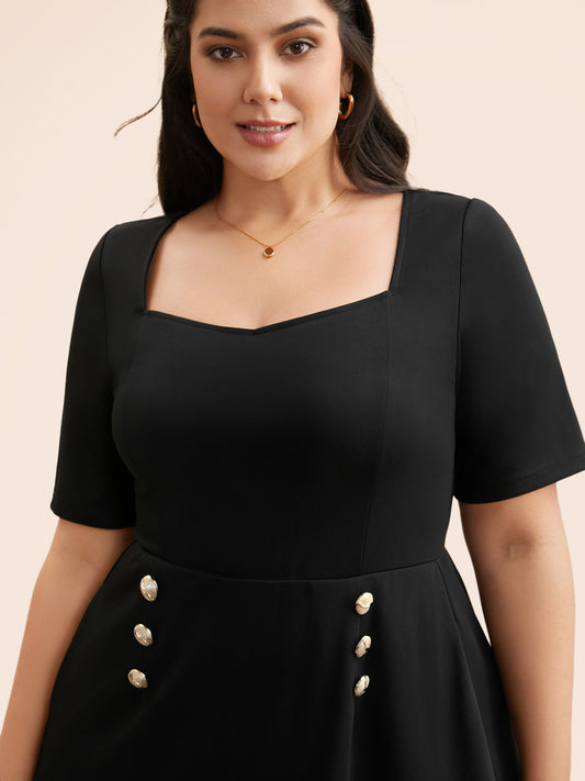 Heart Neckline Metal Detail Midi Dress