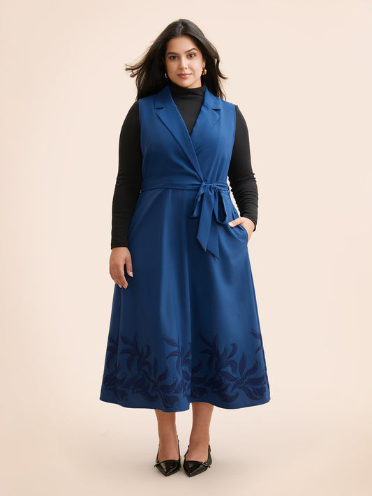Suit Collar Floral Belted Sleeveless Dress