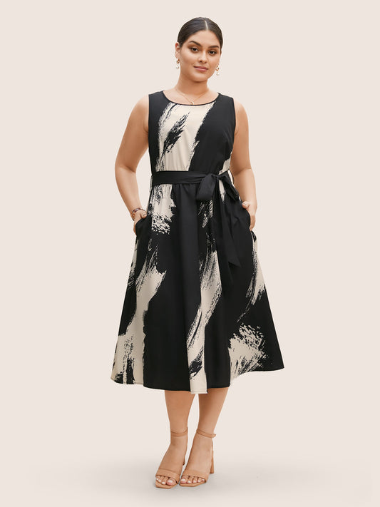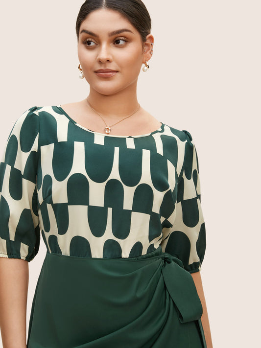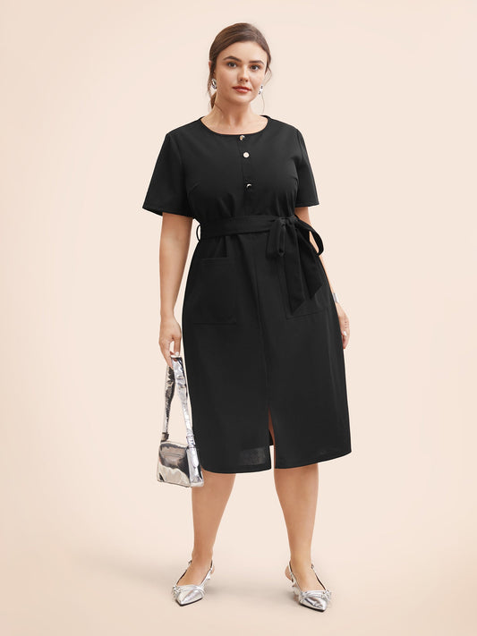 Solid Boat Neck Dolman Sleeve Belted Dress