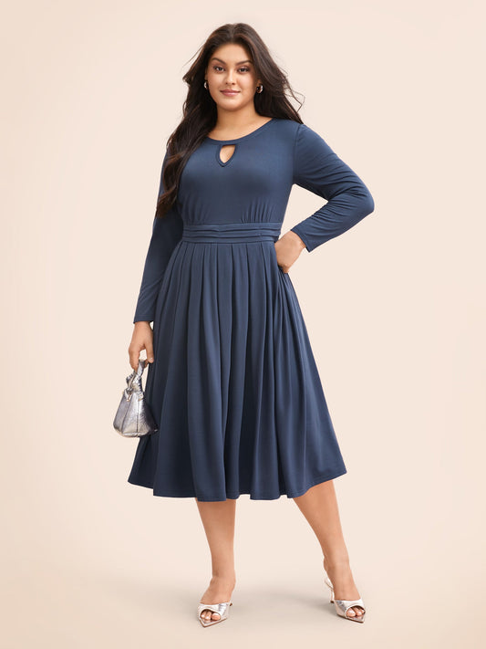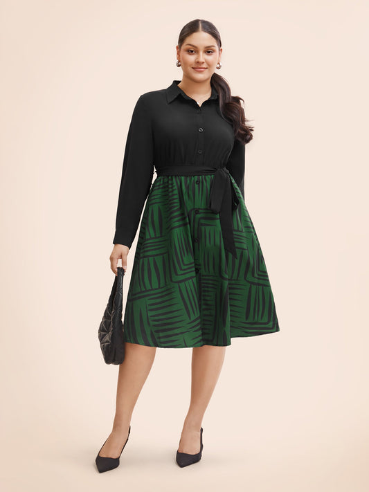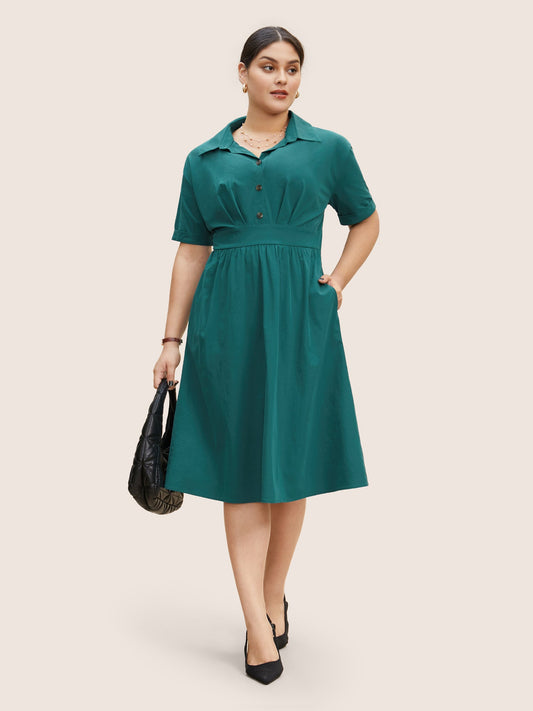 Shirt Collar Pleated Button Detail Gathered Midi Dress