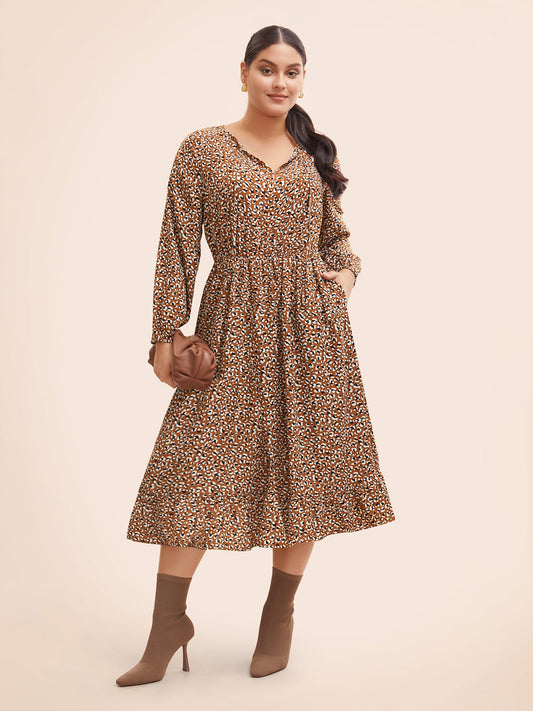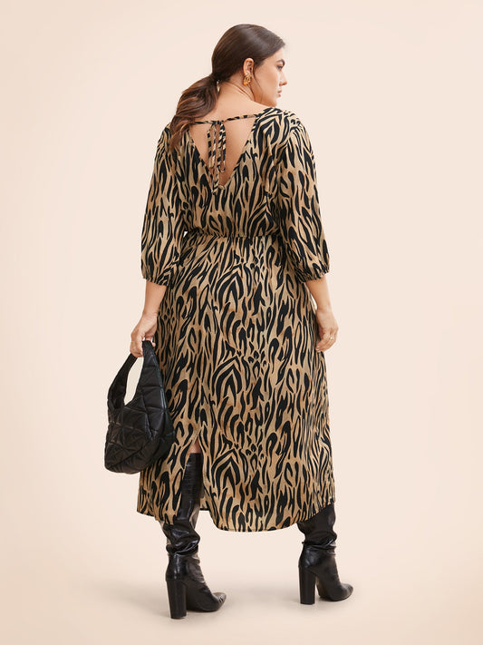 Leopard Print Tie Knot Lantern Sleeve Dress