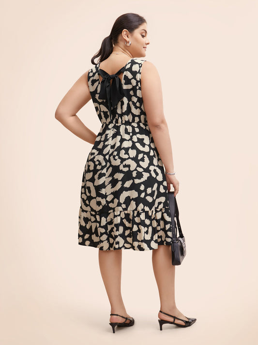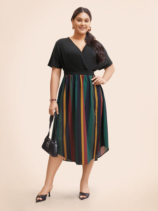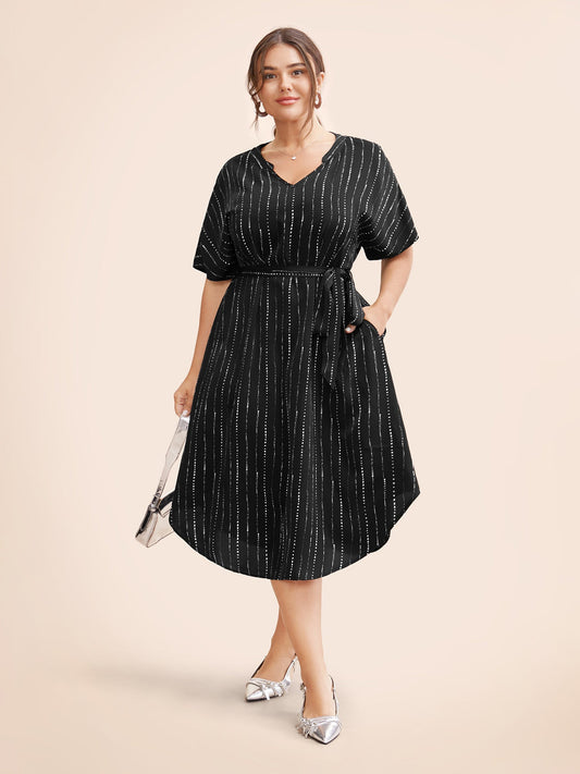 Jacquard Patchwork Tie Knot Raglan Sleeve Blouse