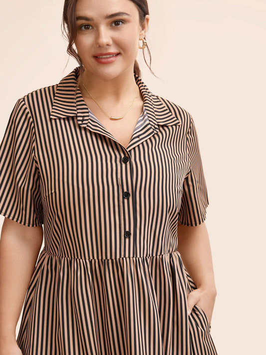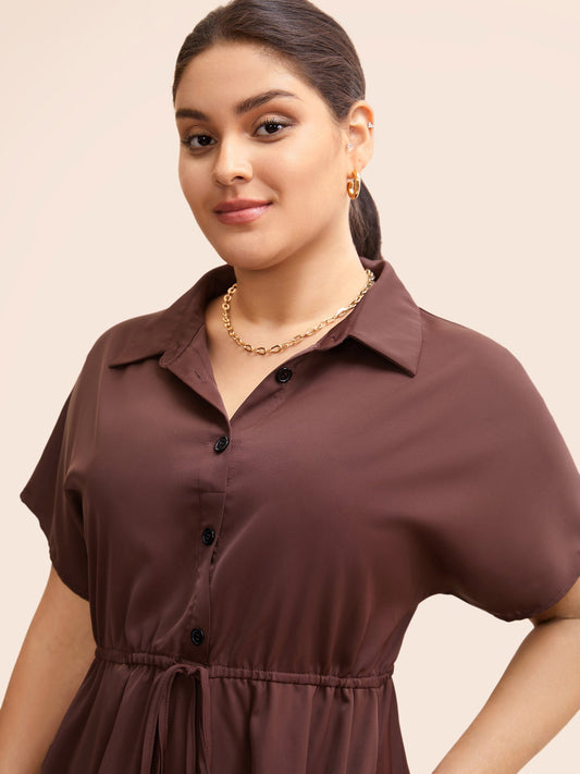 Shirt Collar Batwing Sleeve Drawstring Dress