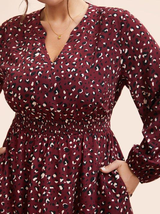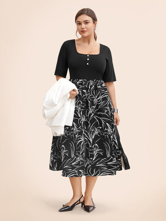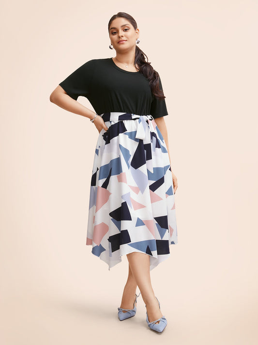 Geometric Patchwork Asymmetrical Hem Midi Dress