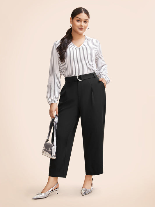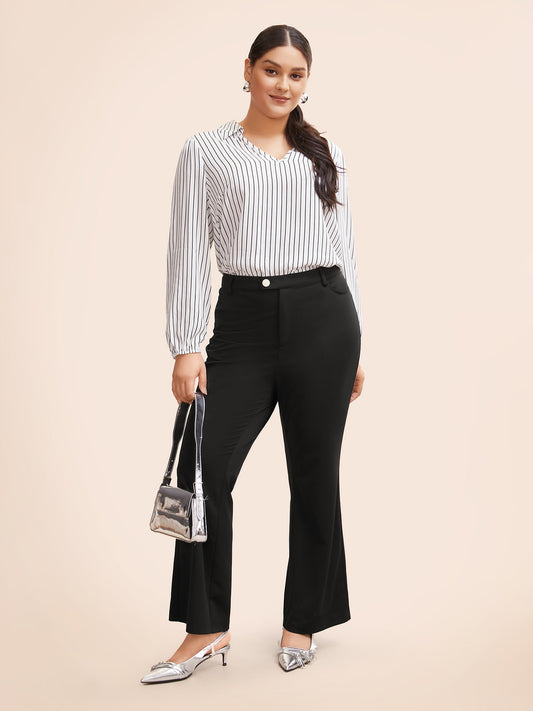 Patch Pocket Tab Sleeve Slit Hem Blouse