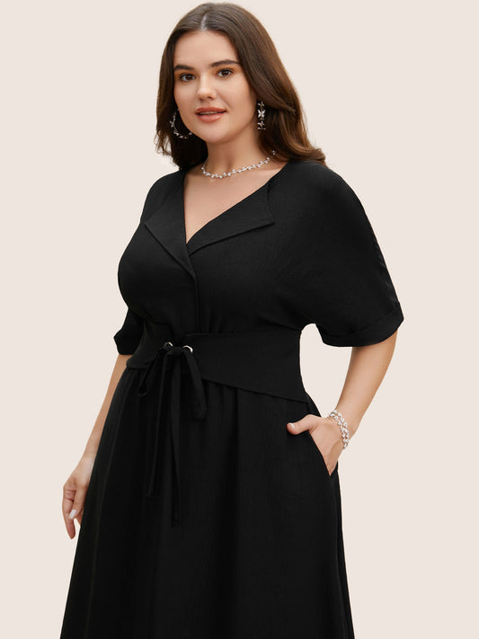 Suit Collar Tie Knot Dolman Sleeve Midi Dress